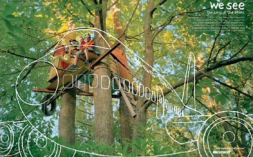 Na formação ministrada no ITAC, a Paloma tirou algumas fotos de mim (e de várias pessoas). Gosto, em especial, de uma em que estou na frente de um painel lindo da Microsoft (em que meninos brincando numa árvore imaginam que estão pilotando um avião a jato…).