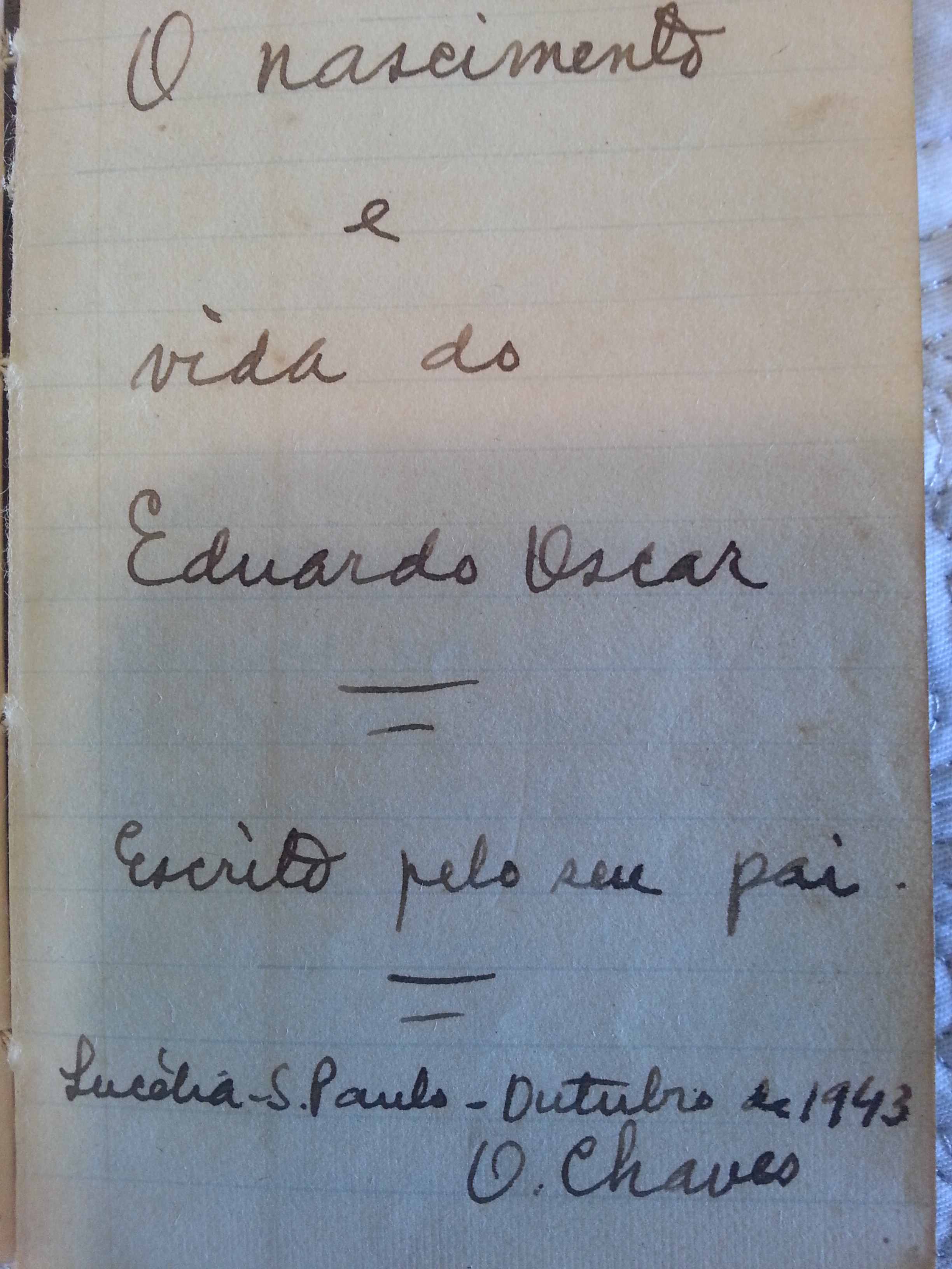 Uma das coisas pela qual vou ser sempre grato a meu pai é o fato de que ele escreveu a história dos meus primeiros 12 meses de vida em uma pequena agenda, e, depois, ficou 12 meses sem escrever, voltando a fazê-lo apenas no dia de meu segundo aniversário. Vou transcrever aqui (exatamente na grafia usada) o que ele registrou, sob o pomposo título de O Nascimento e a Vida do Eduardo Oscar, escrito pelo seu pai, tendo o primeiro registro a data de Outubro de 1943.