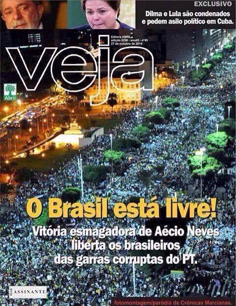 “O Brasil está livre! Vitória esmagadora de Aécio Neves liberta os brasileiros das garras corruptas do PT.